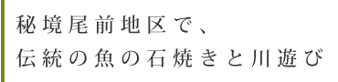 尾前地区に伝わる「石焼」料理を昼食に体験できるイベント。「石焼」とは、熱した石の上でヤマメや野菜を焼いて食べる料理方法。その石の熱し方がダイナミック!河原に用意された大きな石の上に、切り倒した丸太そのもののような大きな木をおき、それに火をつけて石を熱するのです。